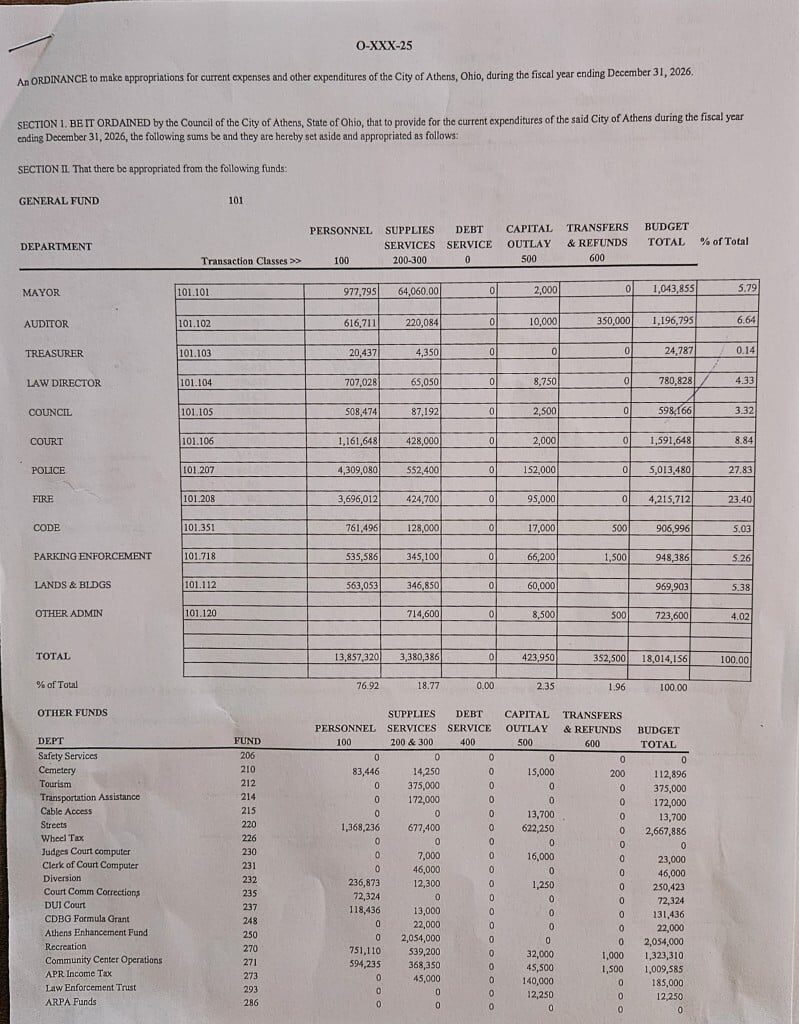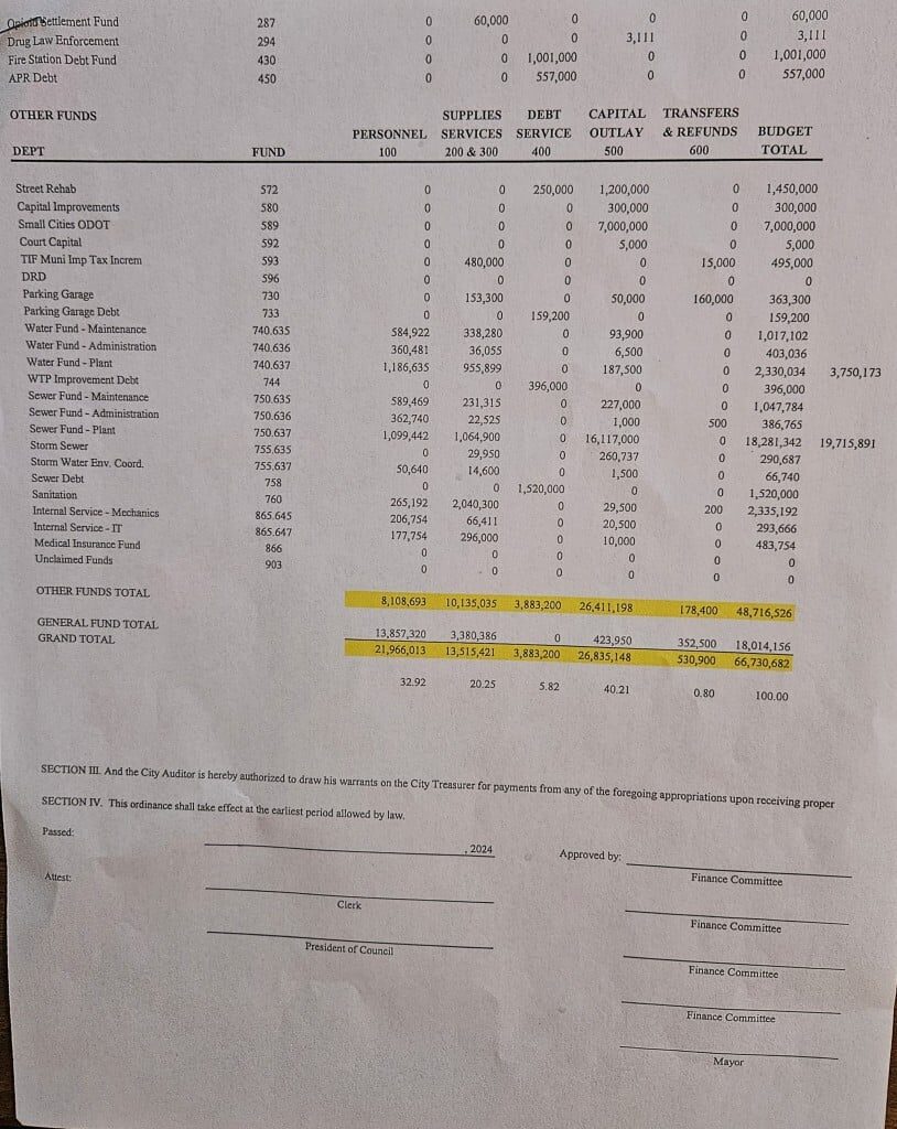 Expenditures from the general fund, which represents most of the budget, total just over $18 million. Those departments are in line or slightly down from last year’s spending, including the mayor’s office, auditor, treasurer, law office, city council, municipal court, police, fire, code enforcement, parking enforcement, lands and buildings, and other administration.