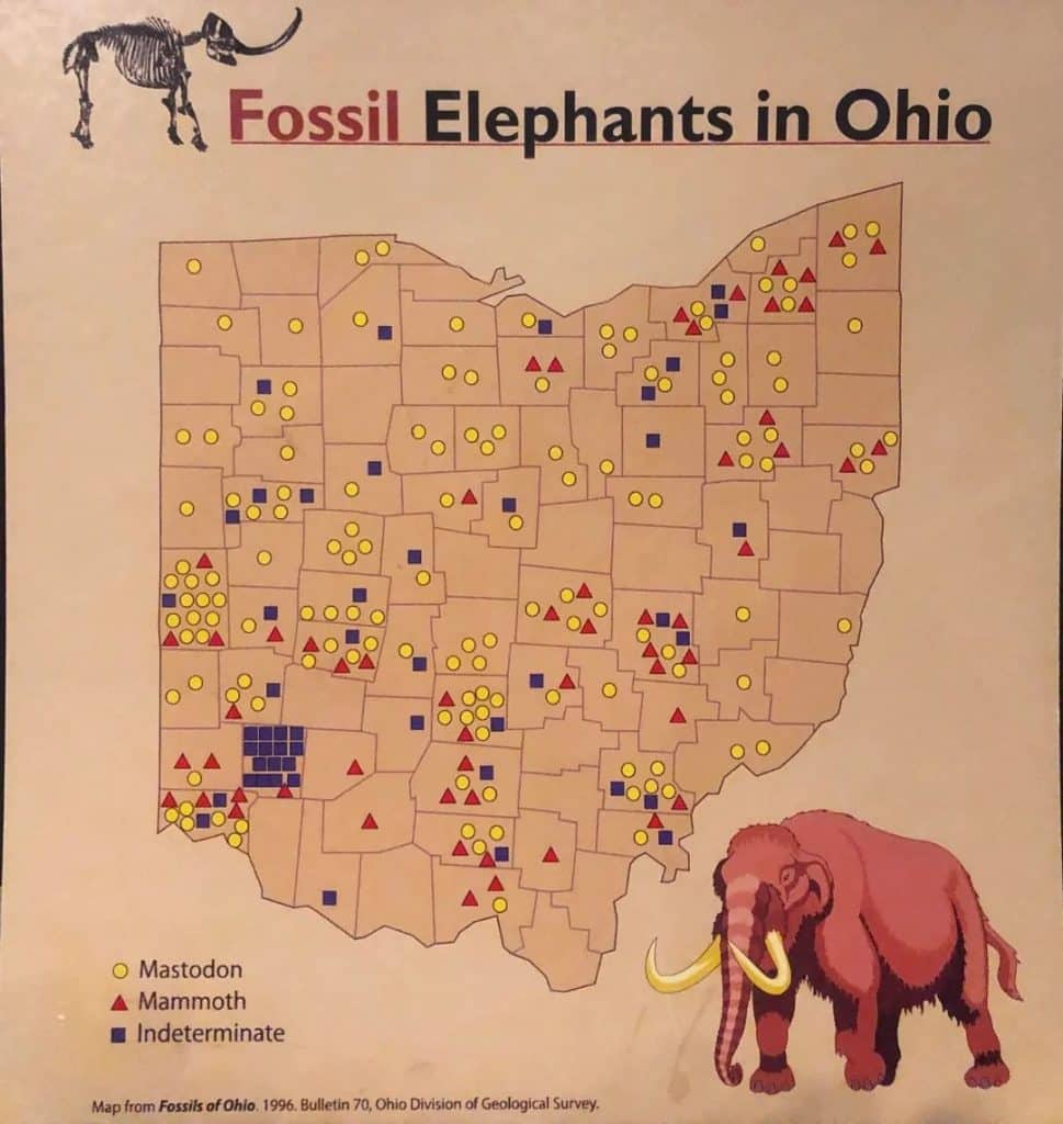- A map of “Fossil Elephants in Ohio” included in a 1996 publication on Ohio fossils shows that eight elephant-like fossils had been verified in Athens County.