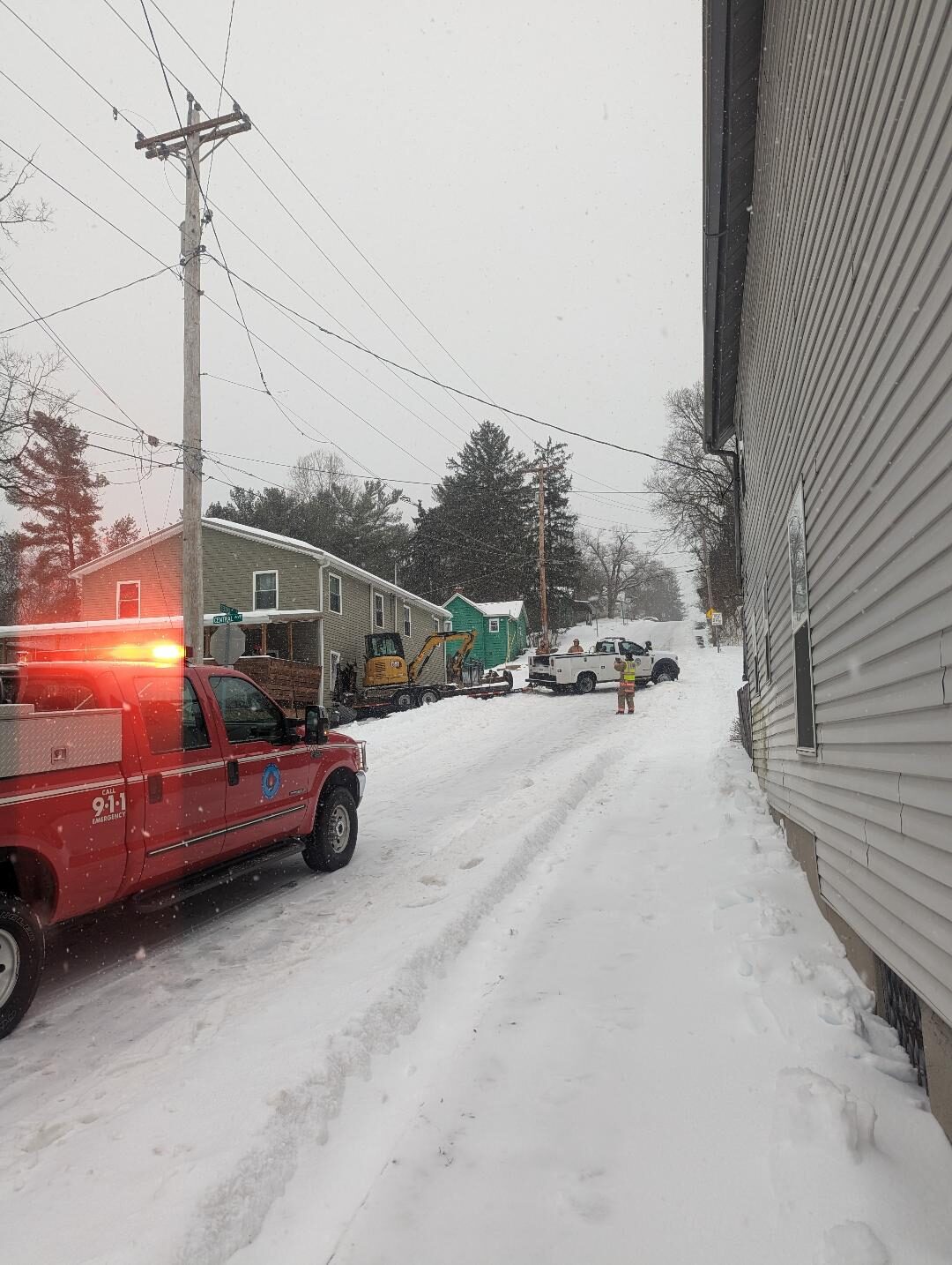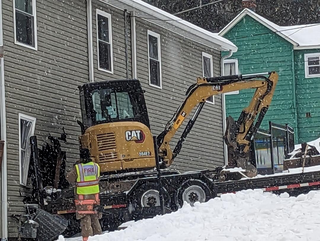 “While they had a vehicle go in front of them and salt the Second Street hill area, it just wasn’t sufficient,” Stone said. “The driver who was hauling the excavator basically lost traction on the hill, and it slipped backwards. They slipped into the house.”