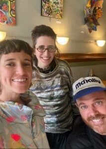 (From right to left) Davey McNelly with Oona Taper, experimental short film director, and Javi Devia, traveling artist and clown.