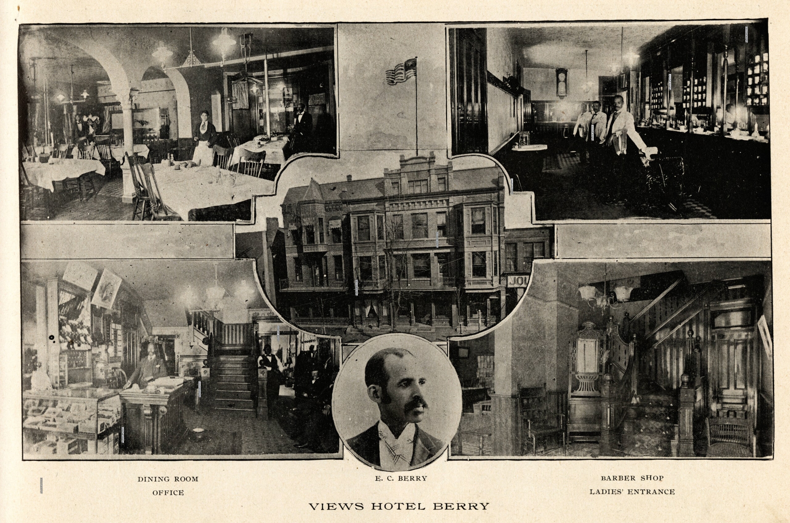 The Berry Hotel began as an ice cream shop and later restaurant the Berrys operated on a lot Edward bought in 1880 for $1,300. In 1893, they expanded the restaurant into a hotel, where Mattie Berry is credited with starting the now-standard hotel conventions of placing a Bible, toiletries and closet hangers in each room, as well as bygone traditions like mending patrons’ clothing. The hotel became a major attraction on Court Street, offering fine dining and hosting several presidents, including Teddy Roosevelt, during the Berrys’ ownership.
