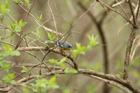 One of the 36 wood warblers that travel through Ohio annually during spring and fall migration. The northern parula is included in the 24 wood warblers that nest in Ohio in the spring months. This tiny bird is the smallest warbler in the state, only about four inches in size. Adult males are a mix of light blue, yellow and white with a noticeable auburn band across the chest and white lining around the eyes. Spring is the ideal time for birders to witness all kinds of migrating species. Depending on a multitude of factors, sometimes migrants show up slightly early outside of their range, which was the case with this bird. It was the first recorded northern parula in the state for the year.