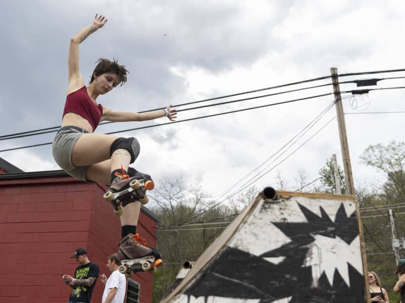Fallen leaves along Chauncey Pet Memorial Rainbow Bridge, a new community park installation at Chauncey-Dover Trailhead at Bailey’s Trail System featuring painted paw prints.