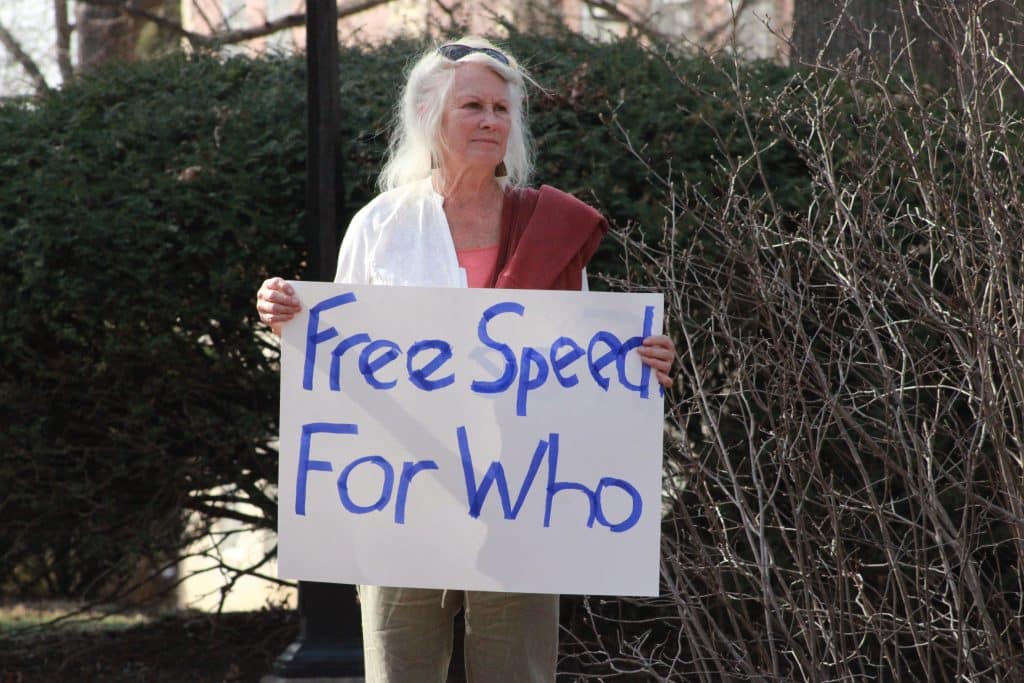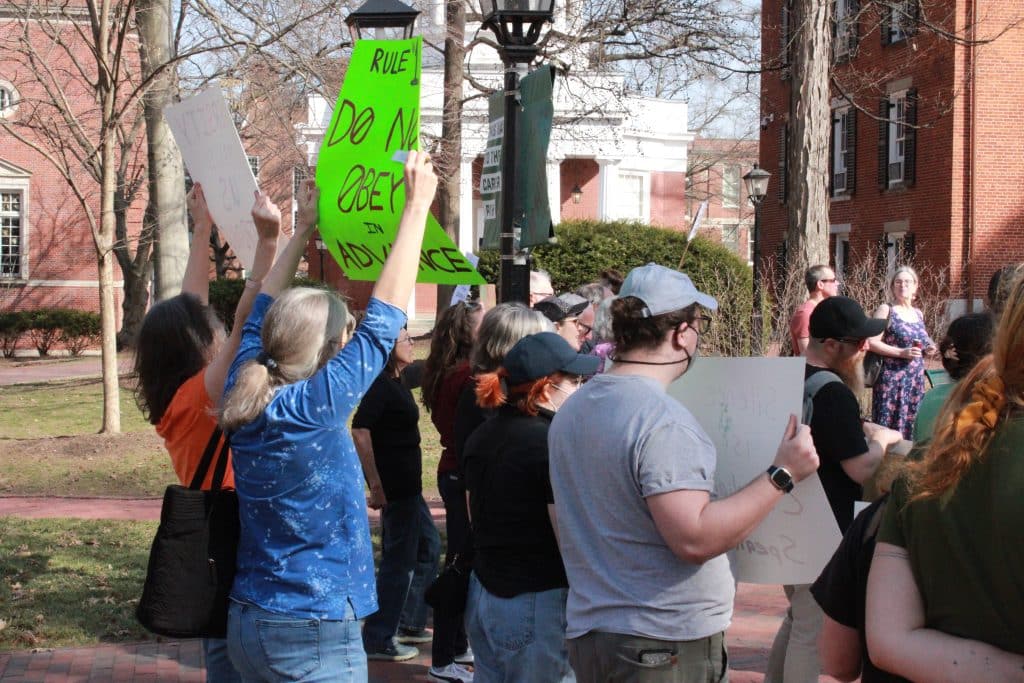 Correction: This article has been updated since the initial publication to correct the number of speakers at the protest. We apologize for this error.