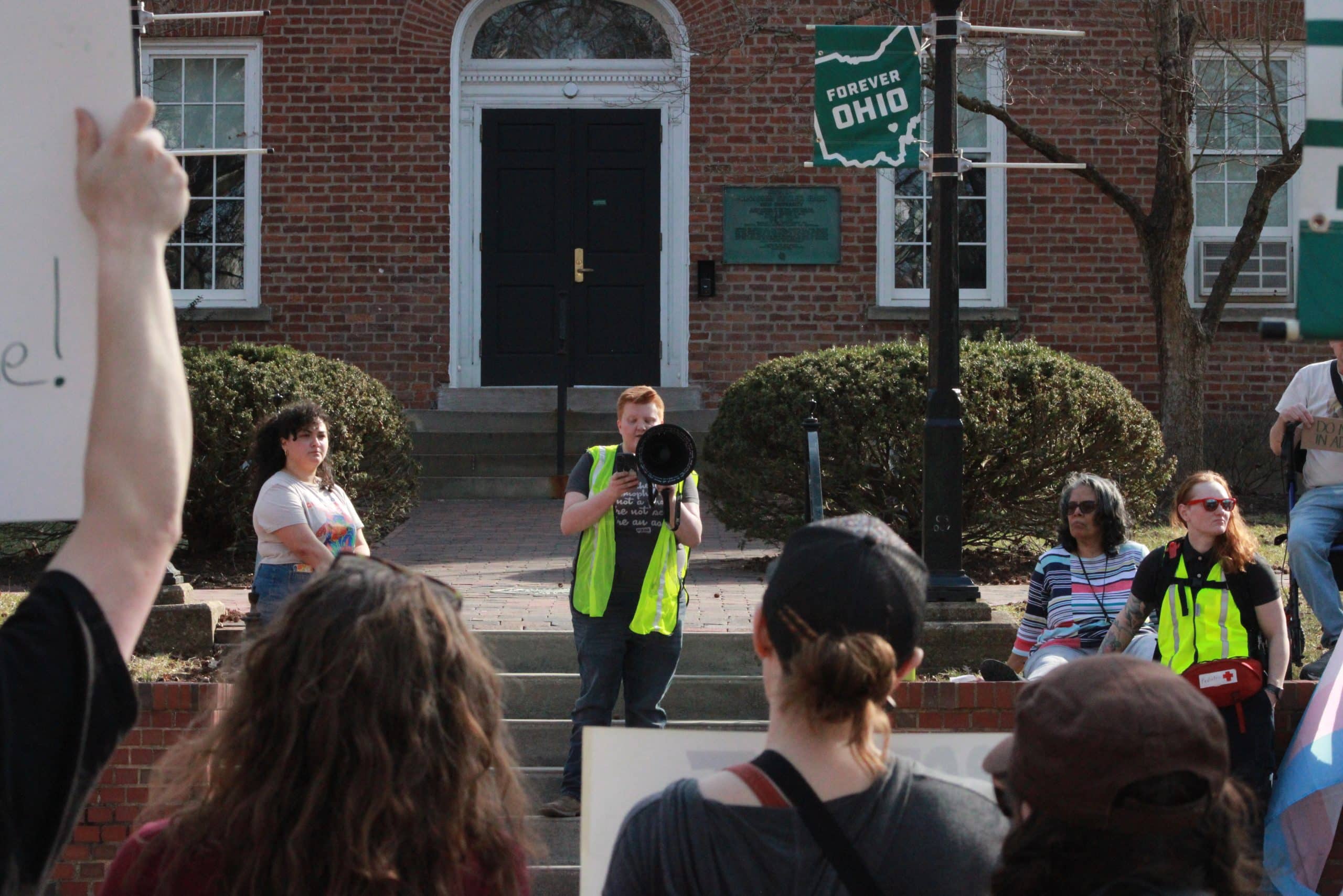Eleven people spoke during the protest, including Patty Stokes, a professor at Ohio University and Ari Faber, acting director of United Campus Ministry and candidate for one of Athens City Council’s at-large seats.