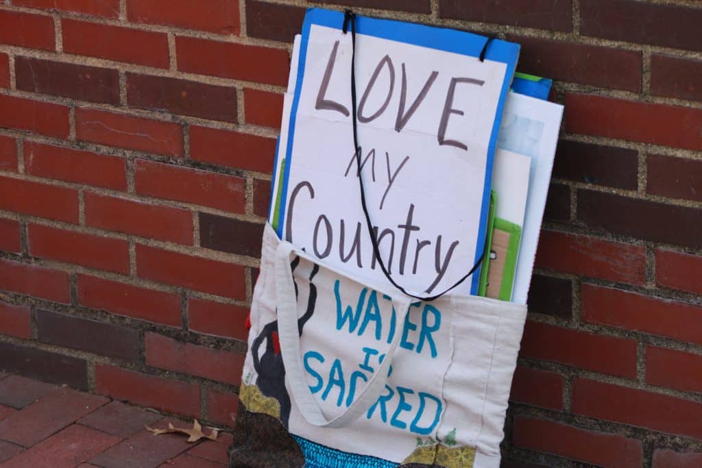 At the end of the protest, demonstrators sang the song “We Shall Overcome,” a gospel song with roots to the Civil Rights Movement.
