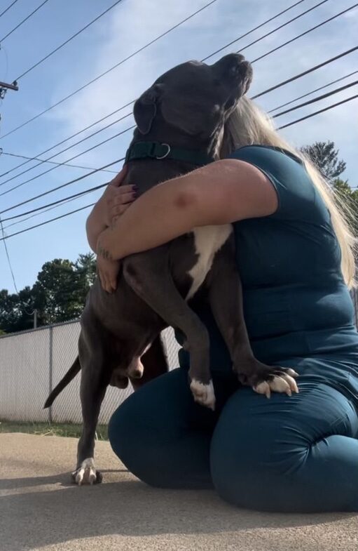 In August, Bosco wandered up to someone’s porch and lucky for him, that someone worked at a local veterinary office. The staff at The Plains Veterinary Clinic were kind enough to care for him for over 3 weeks while looking for his owner. Unfortunately, no one claimed him. Bosco appears to be a Senior grey Staffy or Pittie and may have been dumped, as so many Senior dogs are in our county. While he waited, Bosco was a very good companion to the front desk staff and was friendly with every person and dog he met. They also learned that Bosco does not extend the same kindness to cats. He will need a feline-free home.