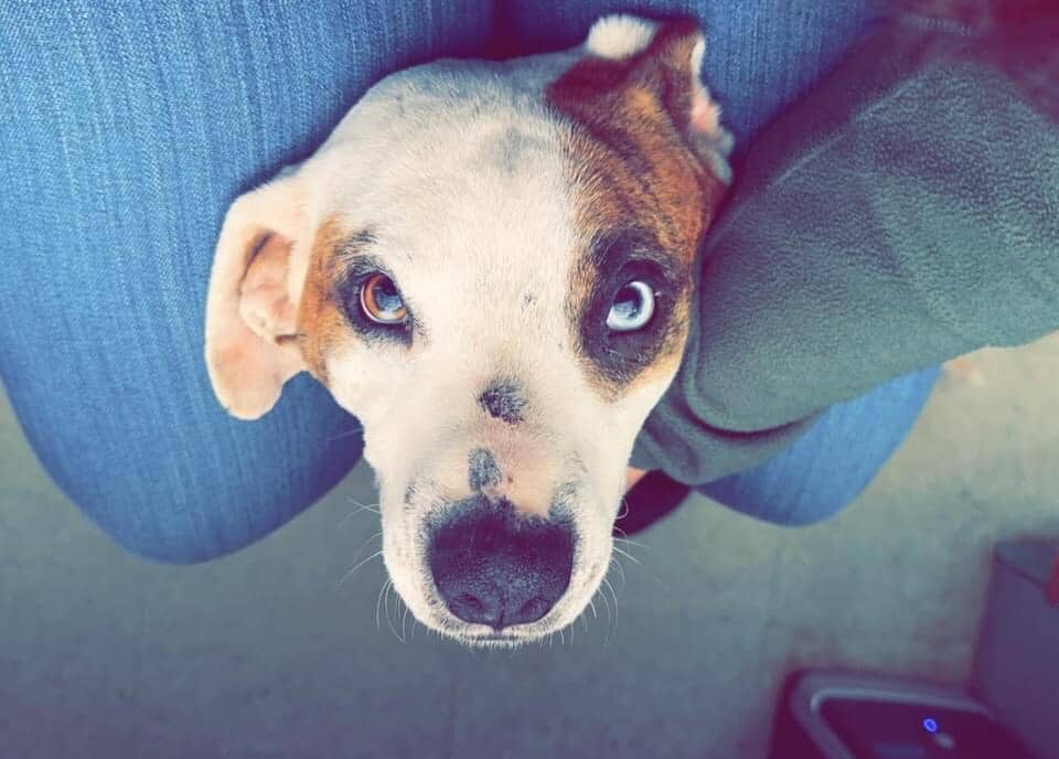 Georgie is stunning with her brindled coat and blue eye. Georgie has had positive interactions with other dogs and enjoys sharing walks with them. There is no doubt that Georgie is a mama dog though. If a young dog jumps on her or crosses a line, she quickly puts them in their place and then continues with her stroll. We love her no nonsense demeanor!