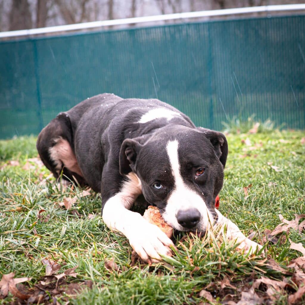 Despite this rough start, Pilgrim has been a good sport about living in the shelter and looks for any opportunity to make you smile. There is a note in the shelter that reads: Pilgrim loves playing with toys and stuffed animals. He truly lights up when someone takes him outside to play. Thankfully, Pilgrim has a special volunteer that comes to the shelter just to let him get goofy and throw toys in the yard. He is so grateful for these moments, but he is more than ready for his forever home.