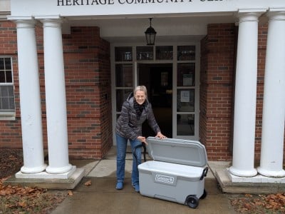The organization donated a food cooler and carts to two local food pantries. Funding for the gifts was provided by QuidelOrtho of Athens.