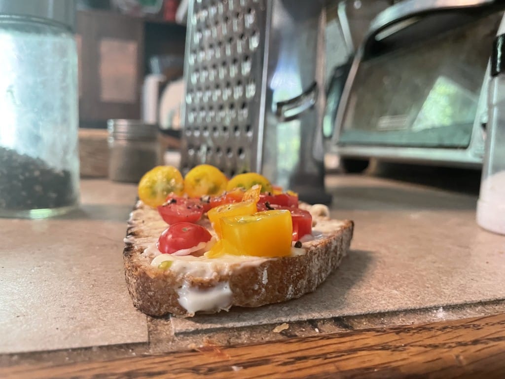 Maybe your first tomatoes are ripened. Get some bread from Athens Bread Company and put that baby right in the toaster oven. Then pick some basil, and put it in a mason jar with an egg yolk, some oil, and garlic to make an herb mayonnaise. Use an immersion blender (and ask me about my immersion blender story!). Put that homemade mayo, sliced tomatoes, and some salt and pepper on bread, wrap it up, and take it to the theatre with you. You deserve it.