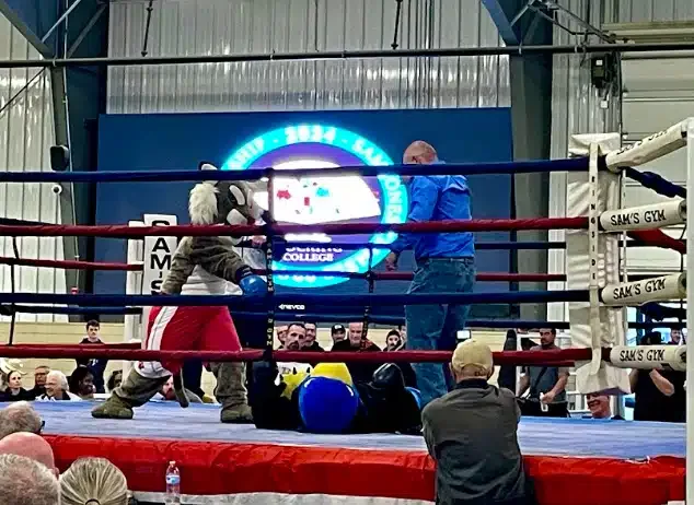 A unique exhibition took place near the end of the night as Trimble High School’s mascot and Hocking College’s mascot both entered the ring; the crowd exploded with laughter and excitement as the Tomcat took the red corner and the Hawk took the blue corner. The Tomcat jumped with confidence as the bell rang and with one punch from the Tomcat, the Hawk went down, the bell rang and the Tomcat won with a knockout.