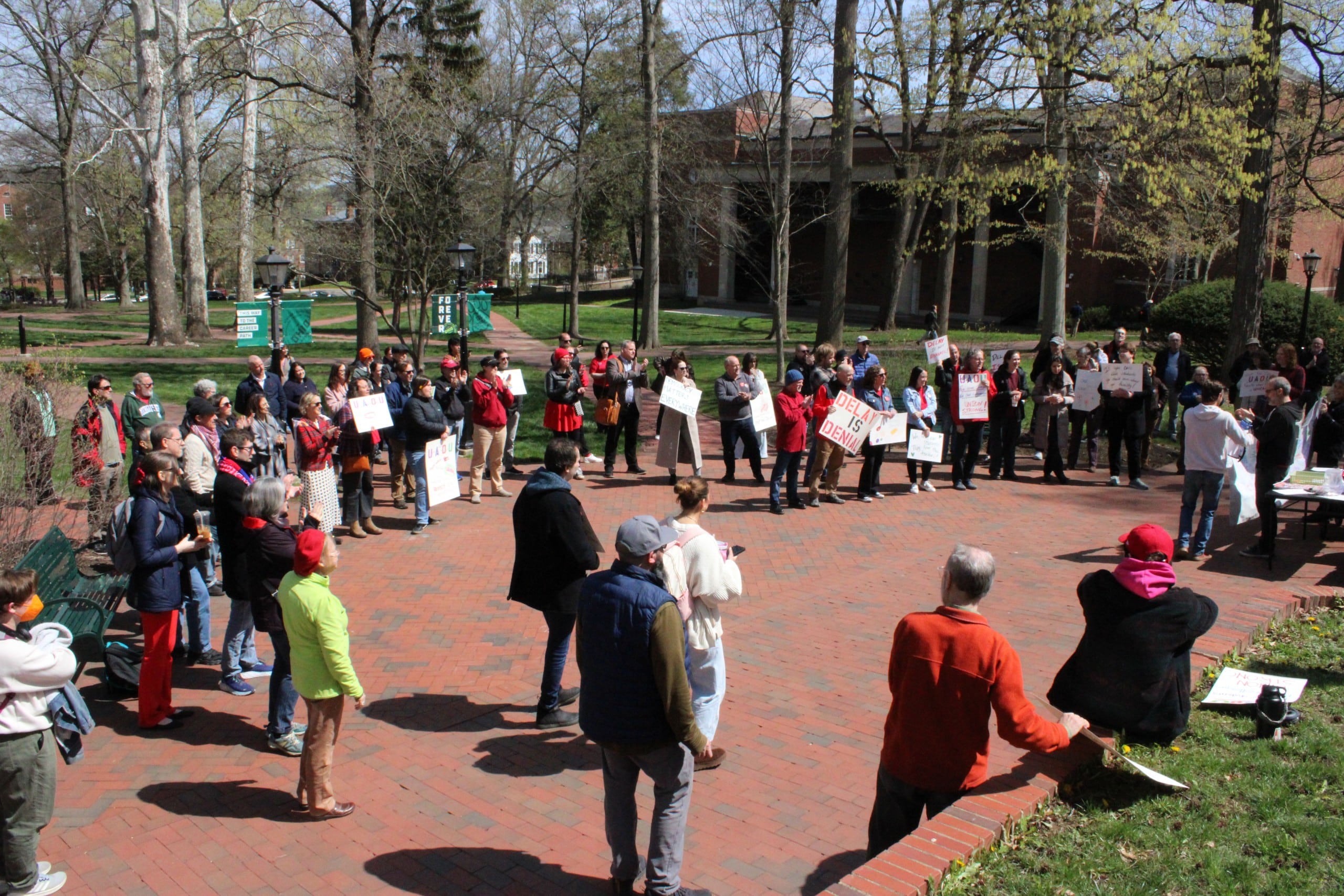 At Wednesday’s protest, Matt deTar, an assistant professor in OU’s School of Communication Studies, dismissed the idea that UAOU ran afoul of the OAC by organizing meetings.