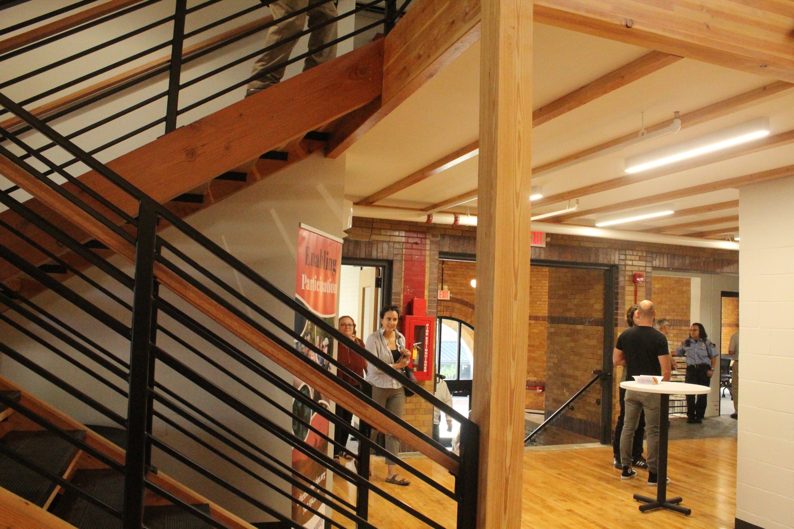 ATHENS, Ohio –– The Athens Armory reopened its doors to the community Tuesday, Sept. 30 at 1 Armory Street, Athens. Locals came together and toured the newly renovated space over drinks and snacks, exploring the building that will home BlueDot Co-working & Event Space and the Athens County Foundation. See our full photo gallery as a slideshow below.