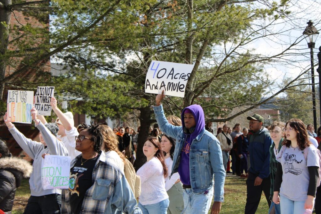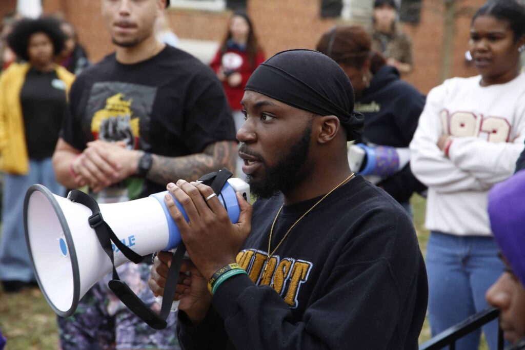 The protest began with a walkout at 1:15 p.m. with students initially gathering at Peden Stadium. Organizers then spoke to the group encouraging them to comply with university policy around protests.