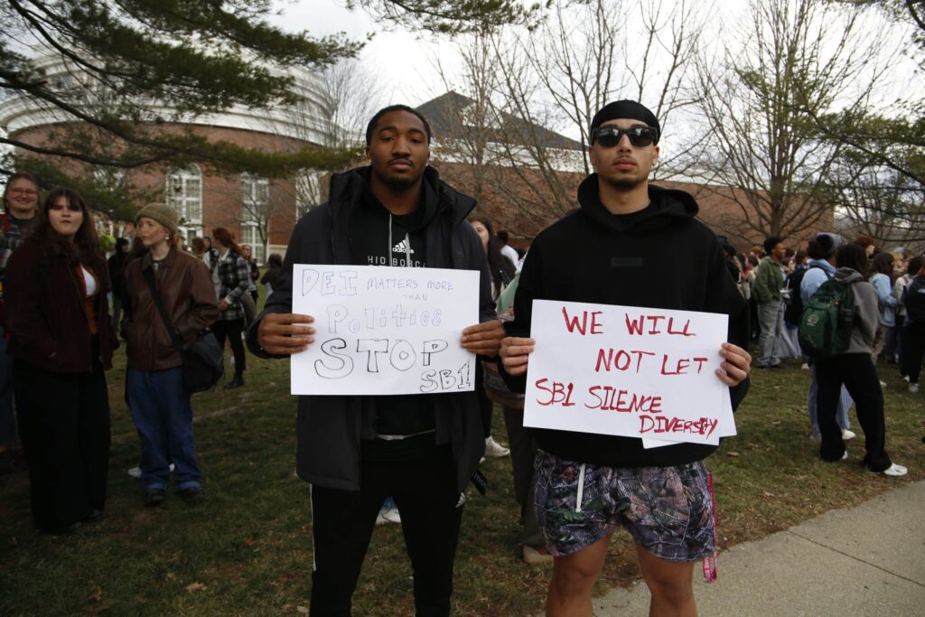 Several students then spoke about their experiences at Ohio University and how DEI programs and funding changed their lives. The group called on Ohio University President Lori Stewart Gonzales and other university administrators to oppose Senate Bill 1 and fight for the rights of students.