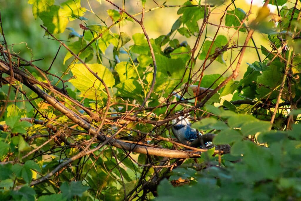 ATHENS, Ohio — A blue jay peeks through the autumn brush on Mound Street in Athens.