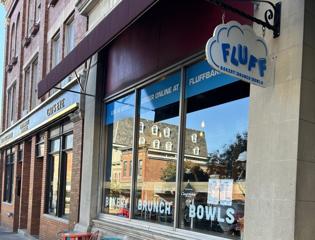 Centrally located on Court Street in the heart of Athens, Fluff is an ideal work or social meeting location, or a spot to catch-up on emails while you sip on a Silver Bridge Coffee, Chai Tea Latte, or a West End Distillery cider cocktail. With roomy booths, window counter seating, and a happy, bright interior featuring art from Passion Works, Fluff is a casual, inviting spot for patrons of all ages.