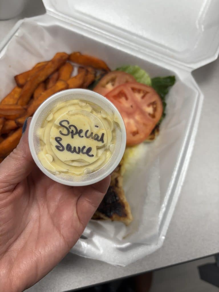 I love a drive-thru and an 8 a.m. opening, and Gigi’s has both. As a seasoned drive-thru meal diner, I was surprised to see holes punched in the top of my to-go box. I conducted Styrofoam to-go box research and found holes help prevent sogginess — an innovation far more practical than McDonald’s 1984 ill-fated two-sided Styrofoam box for the McDLT (McDonald’s Lettuce and Tomato), which aimed to “keep the hot side hot and the cool side cool.” Gigi’s team gouging holes in the top of their boxes is a far more practical, and successful, take-away meal innovation.