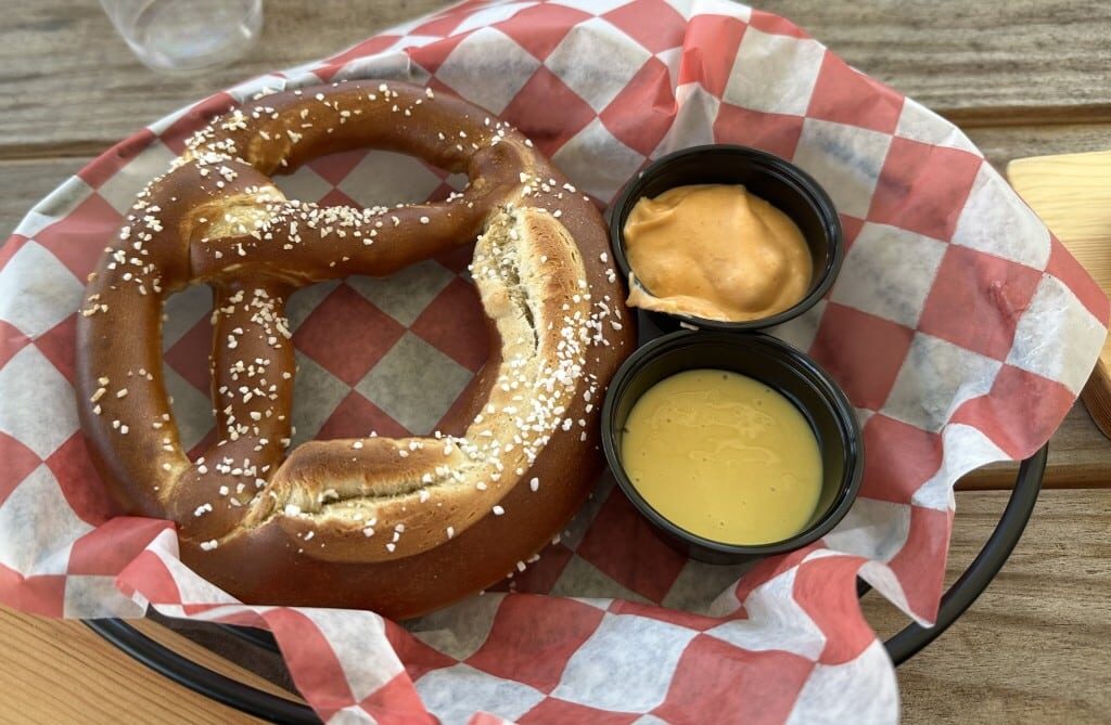 The menu at Dutch Creek Winery is simple, yet satisfying: delicious, hearty pizzas ($12–14), Bavarian style soft pretzels ($6.50) and dipping sauces, including house-made beer cheese and honey mustard (also available jarred).